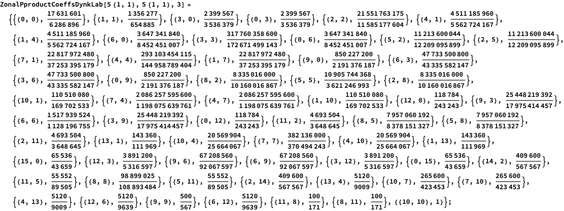 More generally we consider the square of the 3-variables zonal polynomials ZP[{2s,s,0}] and obtain :